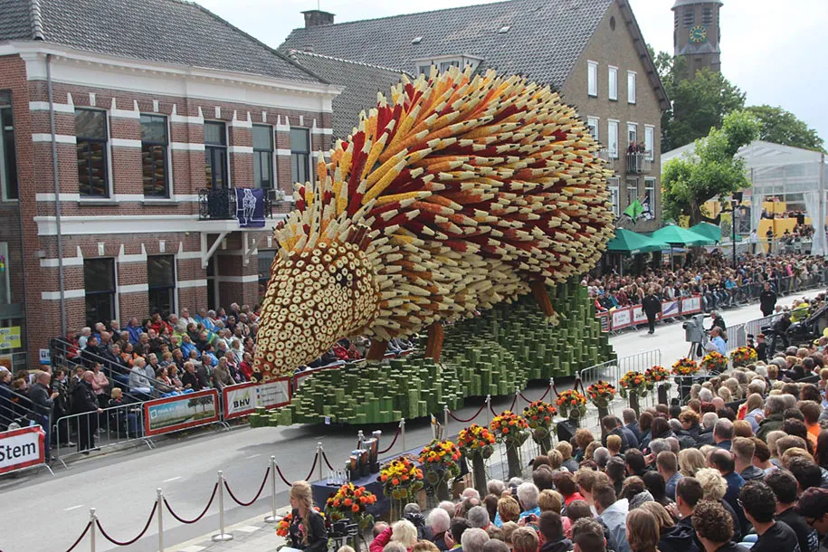 ▼津德爾特是梵谷的故鄉,花車節可以追溯到1936年。當地人為了紀念梵谷,以此為主題裝飾花車,十幾輛花車上的裝飾都與梵谷有關,有的花車甚至高10公尺、長20公尺,看起來非常壯觀!節日這天,大約有5萬人聚集在街頭,慶祝花車節。