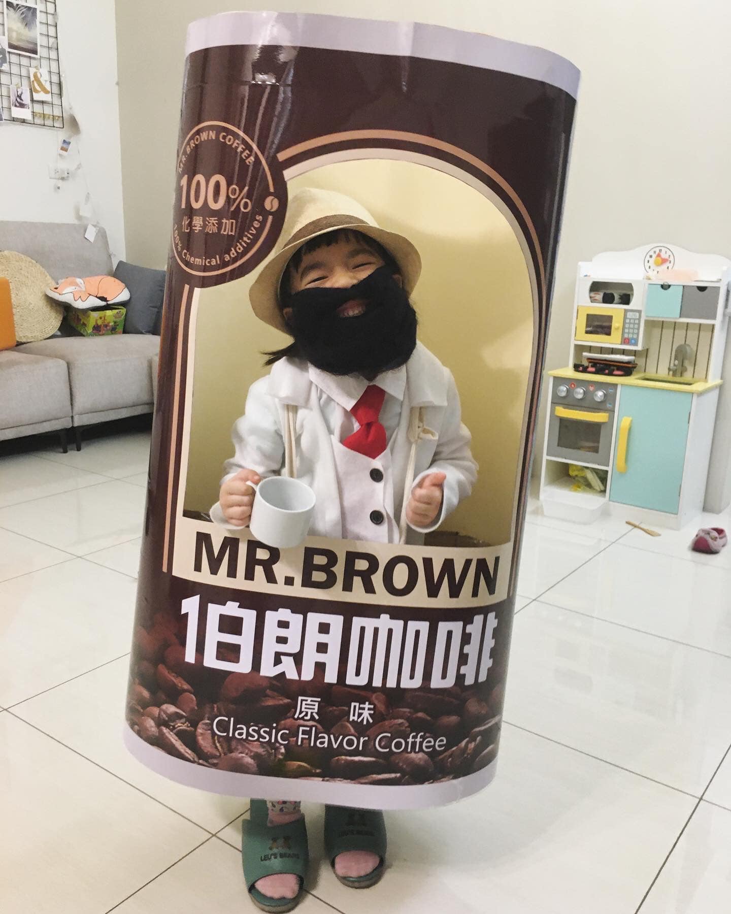 ▼原po表示,朋友最近幫孩子準備萬聖節裝扮,最後的成果超級可愛,大家看到後都表示手太巧了!這位媽媽沒有將孩子扮成熱門的公主或超級英雄,反而將孩子打扮成一罐「伯朗咖啡」。