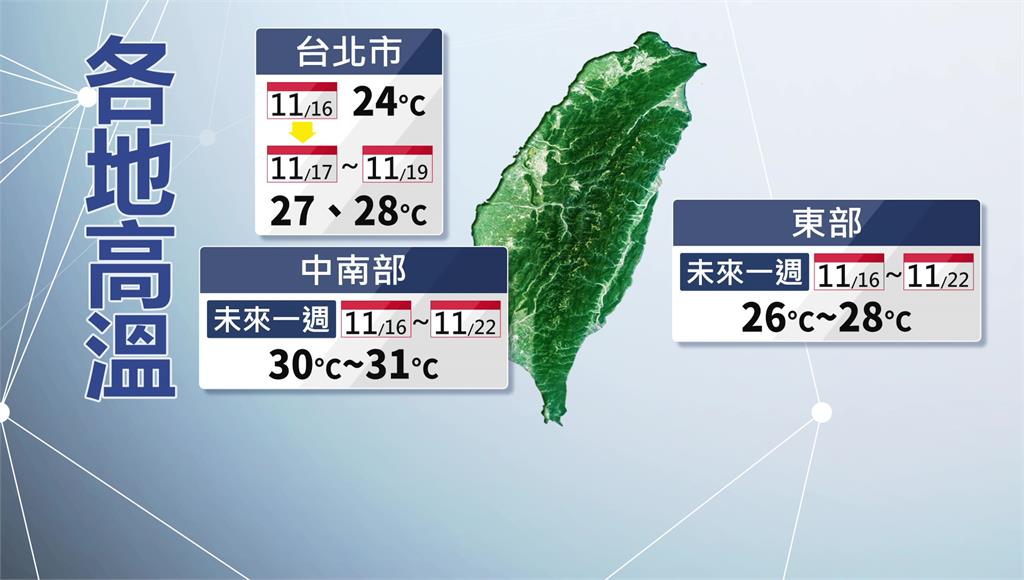 2022年11月21日這是冬天?!中央氣象局指出,今天水氣減少,整體降雨減緩。氣溫方面,各地早晚低溫為20至23度,北部及東半部白天高溫回升到25至28度,中南部高溫可達30至31度。預估未來一週全台低溫都高於20度,要等到12月才會有真正入冬的感覺~