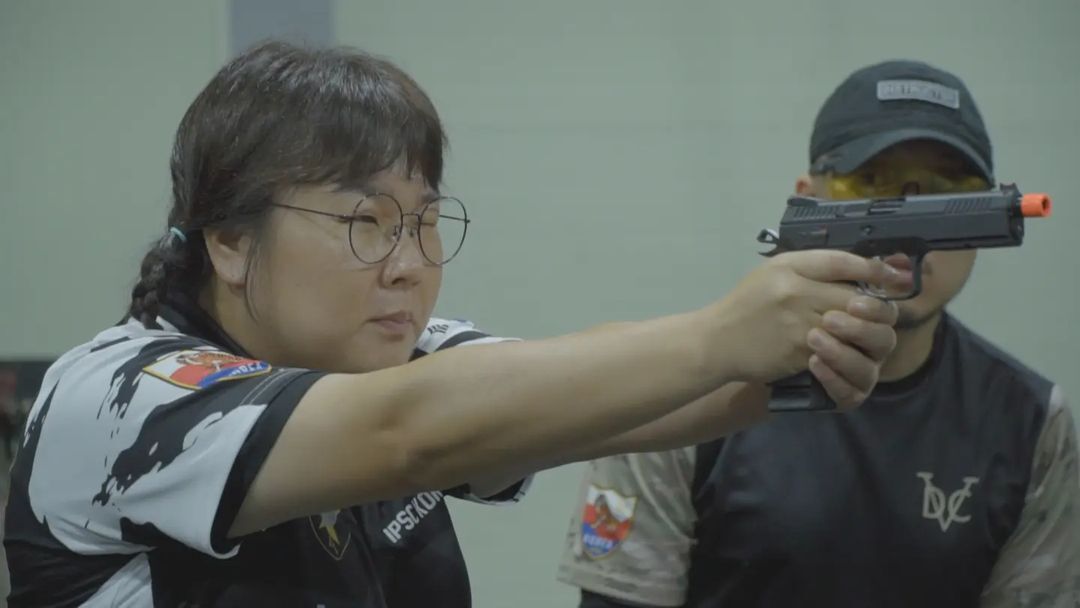▼金玟京學習各項運動都很快速,而且在錄製射擊項目時,意外發現了自己的天賦!後來她經過1年多的練習,在今年6月順利通過南韓實用射擊協會4級的資格考試成為選手,獲得參加國際賽的資格。之後她更通過國家代表選拔賽,成為15位國家代表中唯二的女性!
