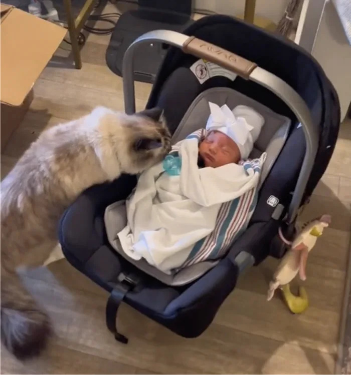 @caydencazier Introducing our newborn to our cat didn’t go as planned 😂 #catandbaby #cat #catsoftiktok #cats #cattok #catlover #baby #babytiktok #babytok #baby