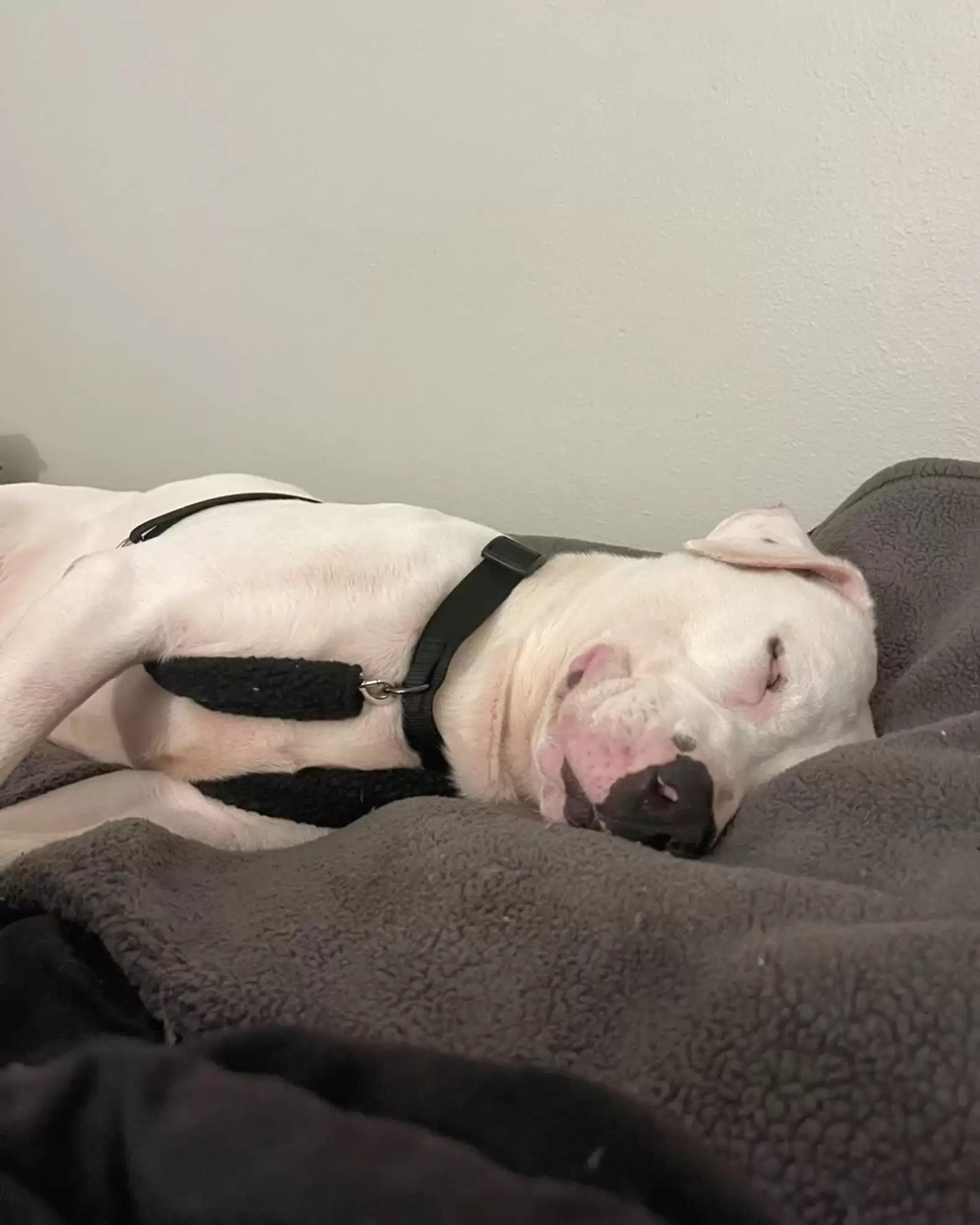 ▼Petey很快就找到了幸福的家,現在牠已經住了進去,而且跟家中的另一隻狗狗成為了好朋友。牠對現在的生活非常滿意,就連睡覺時臉上都掛著幸福的笑容。