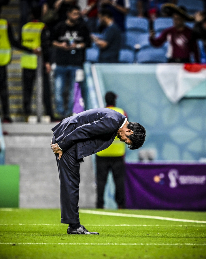 ▼現在日本隊以1:3輸給克羅埃西亞,未能晉身世界盃8強,森保一向看台上的球迷們鞠躬道歉,並說:「球員們展示了日本足球的未來,一個新時代。我們擊敗了德國、西班牙,如果從中抱有信心,如果想著超越這些球隊,而不僅是追趕,我們的未來是光明的。」