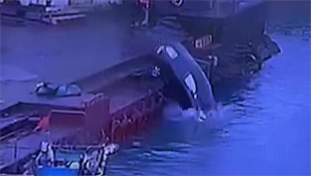 去年12月27日,宜蘭一名林姓男子開著一輛黑色轎車,前往頭城大溪漁港採買魚貨。他行經碼頭邊的道路時直直往前衝,最後連人帶車衝入港口,掉入海面。整輛車載浮載沉,林男飽受驚嚇,趕緊爬上車頂求救。