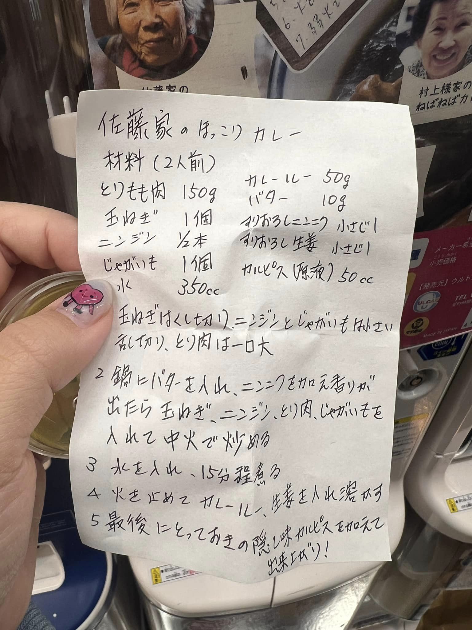 ▼這名網友在臉書公開社團「小廢物俱樂部」發文說,在日本扭到的神奇扭蛋,標榜是地方媽媽手寫的「神秘配方」咖哩食譜。她對此非常好奇,就轉了2顆,打開一看真的是手寫的內容~