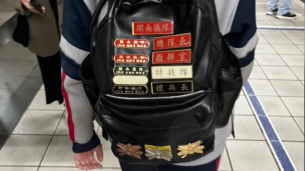 原po在臉書社團「路上觀察學院」分享一張照片,只見一名高中生穿著制服走在捷運站內,後背包上竟掛了滿滿2排儀隊勳章。不僅有「開南儀隊」的標誌,還有「總隊長」、「指揮官」、「特技隊」、「禮兵長」等等。原po看到後直呼:「走到後面都感覺得到風!其他人怎看我不知道,但我個人覺得超帥靈壓破表!」