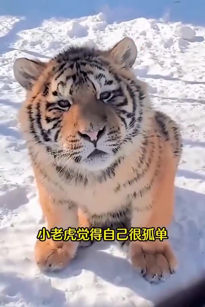 ▼這隻萌萌的小老虎比同伴們都「會吃」,不知不覺間就把自己吃得胖嘟嘟,看起來比其他同伴都要圓潤。先前有遊客到動物園遊玩時,發現牠獨自蹲坐在雪地上,身邊雖然有不少同伴,卻沒有一隻跟牠互動,讓牠超沮喪。