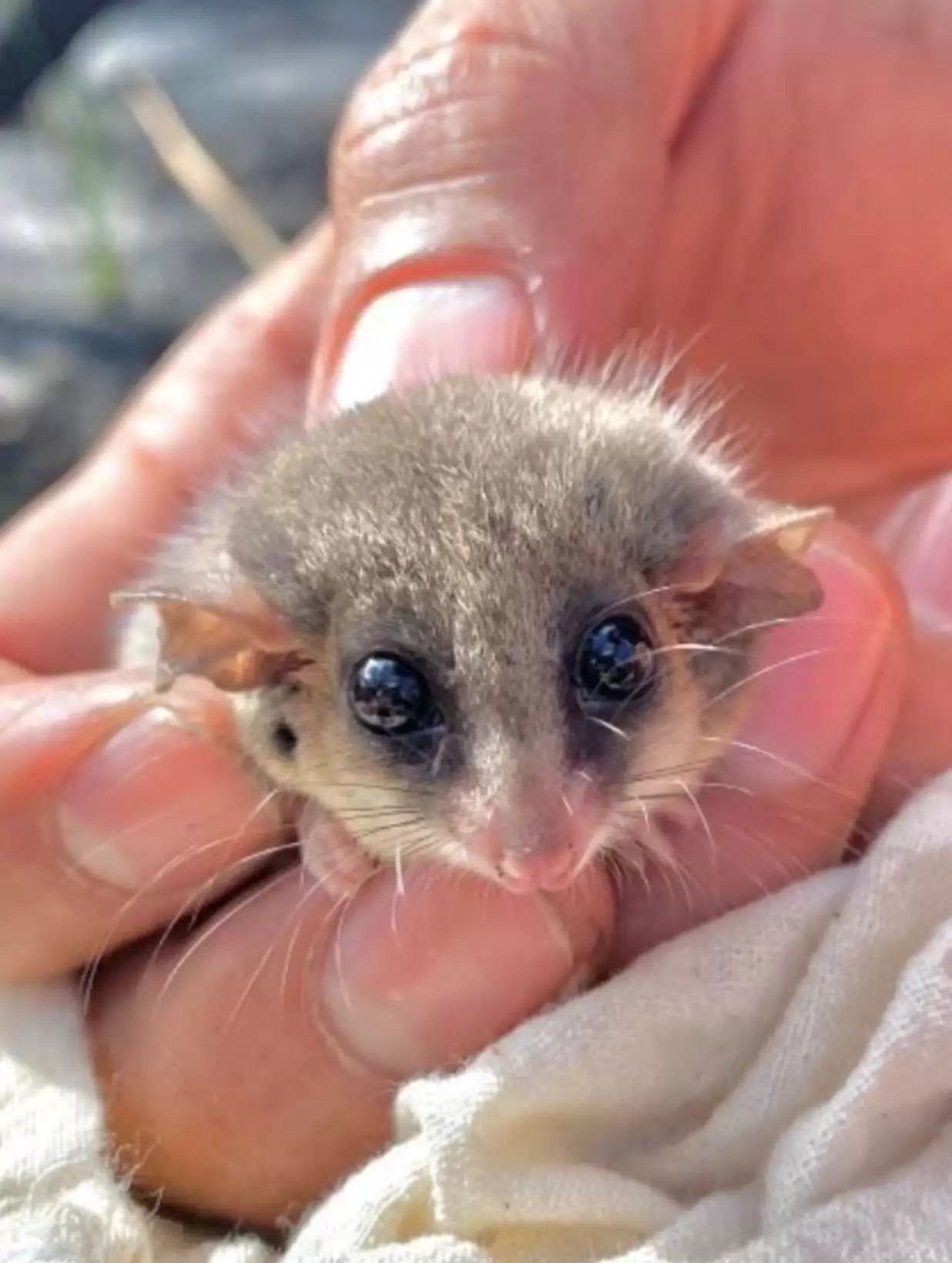 2023年02月10日日前澳洲野生動物保護協會的研究員檢查雪梨(Sydney)附近北頭保護區(North Head Sanctuary)的人工巢箱時,竟在裡面發現了一隻奇妙的小動物。牠只有人類的手指頭那麼大,體重大約7公克。原來這是侏儒負鼠,也是全世界體型最小的有袋動物~