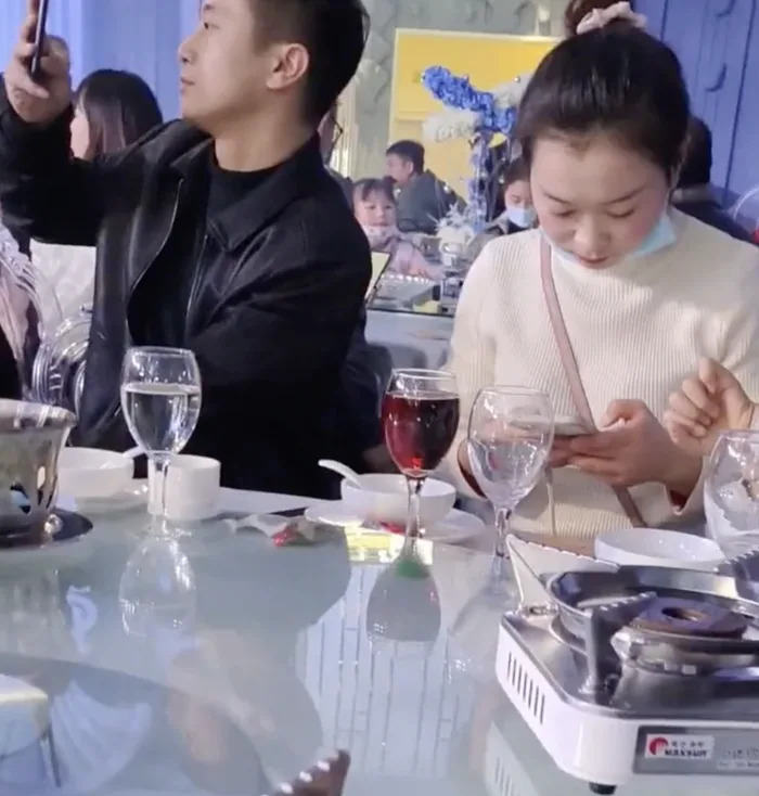 ▼這場婚禮於1月8日舉行,新娘把前男友們全部邀請到婚禮現場,並將他們安排在同一桌,桌上的迎賓牌上還寫著「前男友桌」。4、5名男子坐在這一桌,而且外表風格很像。還有幾名前男友身邊坐著女士,可能是其新女友。