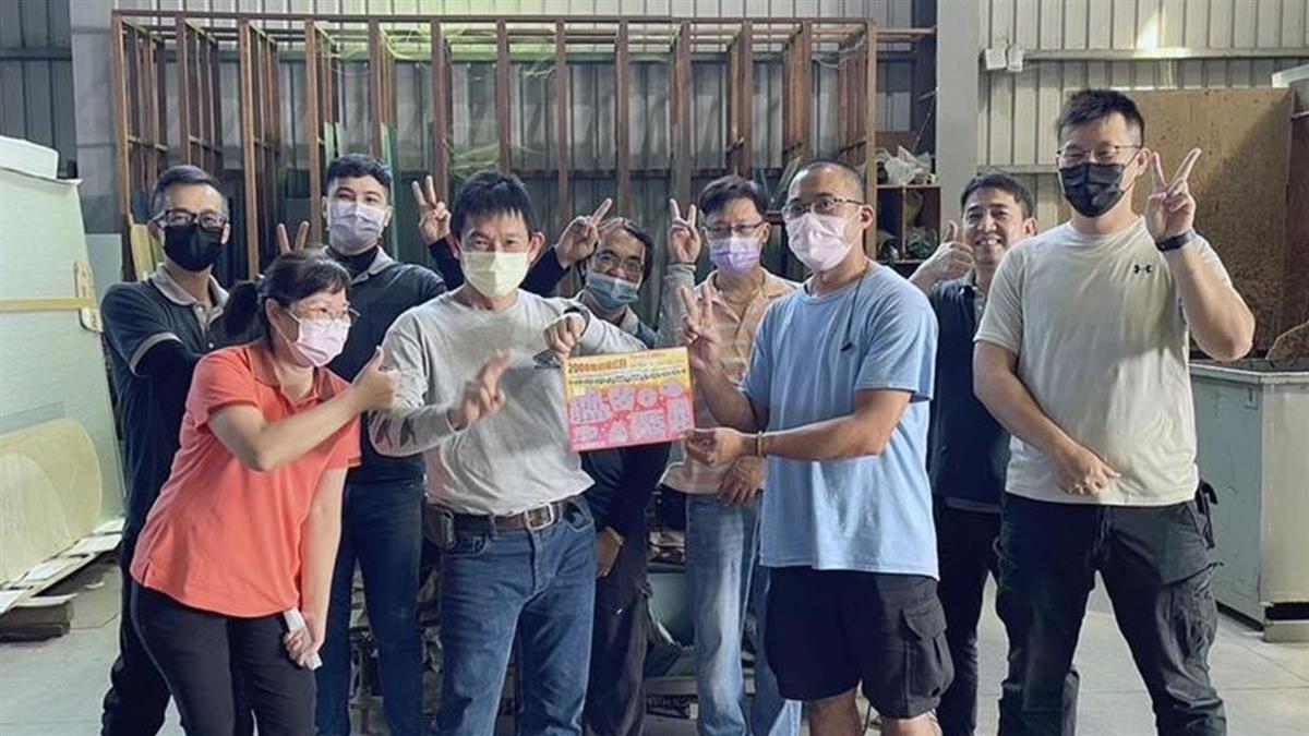 ▼這間公司的員工開玩笑說,刮中百萬大獎的林先生在刮中獎項時反應超淡定,所以大家根本不相信他連續2年都刮中100萬,直到他堅持要大家仔細看一下,大家才確信他真的中獎,忍不住鼓掌歡呼起來。最後員工們拿著刮中大獎的彩券合影,紀錄下這幸運的時刻。