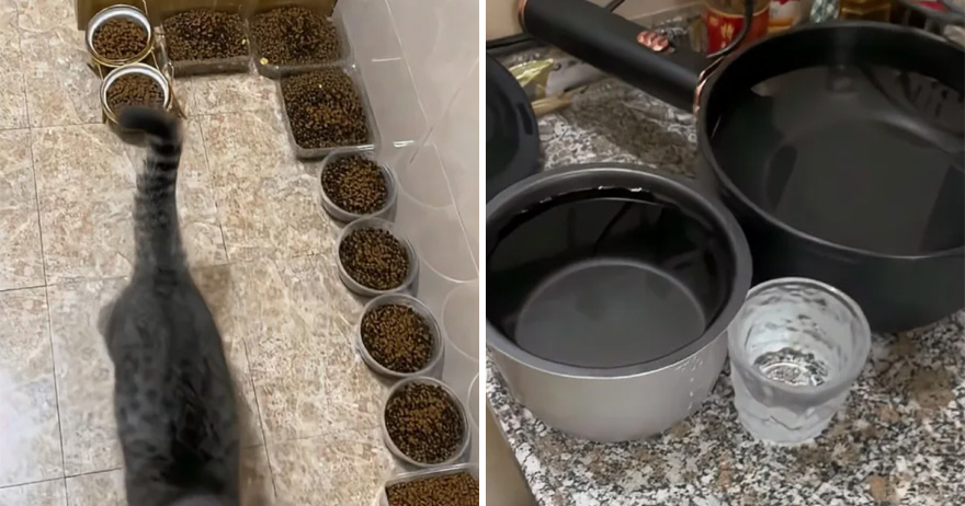 女子表示,這次自己要離開10天,雖然放心不下家裡的貓咪,但實在沒辦法將牠帶走,只能把家裡收拾得整整齊齊,避免貓咪獨自在家發生碰撞意外。不僅如此,她還為貓咪準備了超多物資,將10份貓糧、17碗水和7盆貓砂整整齊齊排列在牆邊。