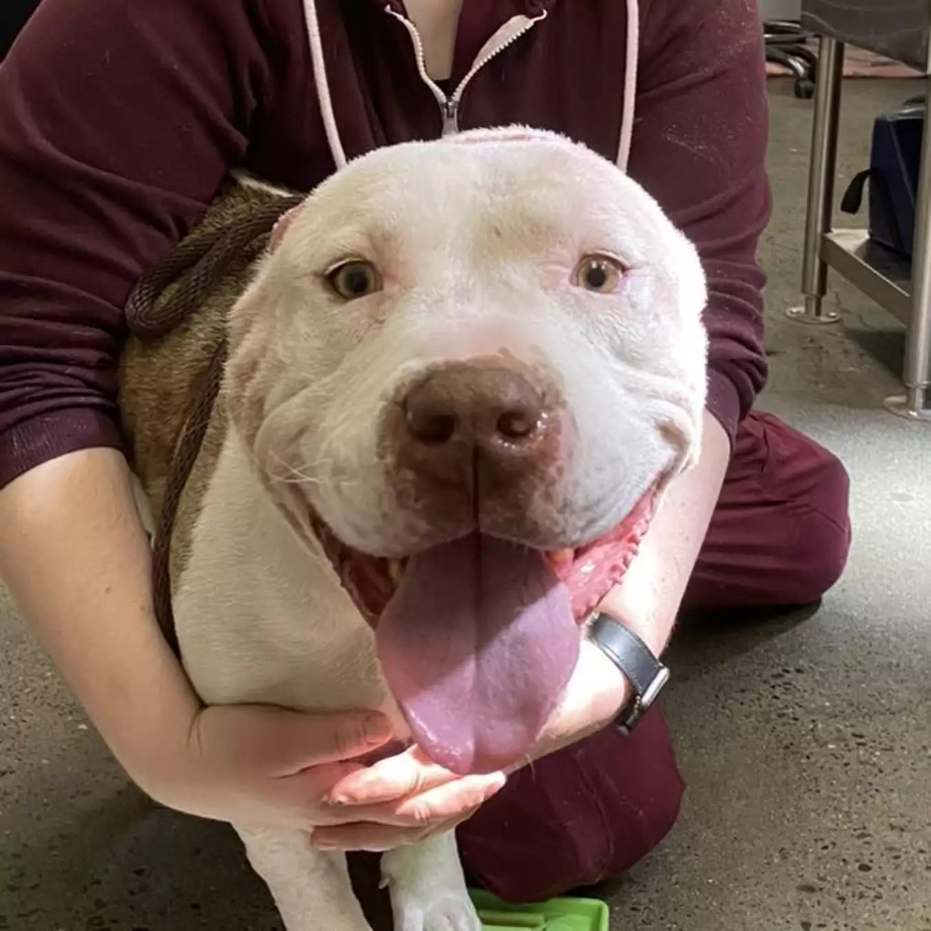 ▼Willy雖然失去了耳朵,但聽力沒有受到影響。動物收容所的工作人員說:「牠被送來的最初幾週,我們時刻關注著牠的傷口。雖然牠經歷了可怕的事故、離開了熟悉的環境,但牠是一隻很乖的狗狗,治療過程中也非常配合。」