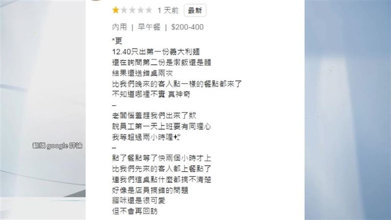 貓咪咖啡廳「等2個多小時」沒出餐! 女大生留一星負評...遭老闆「當場請出門」