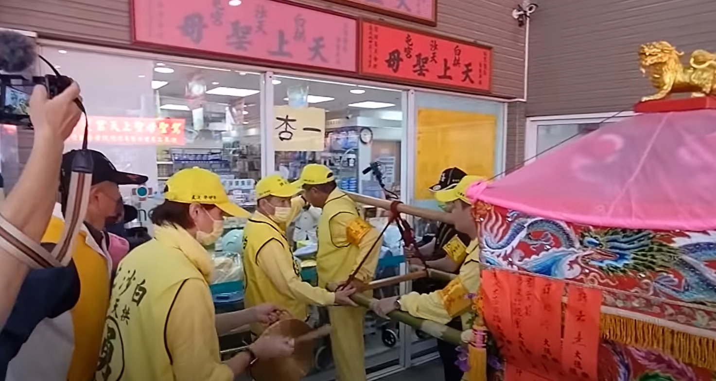 2023年02月15日苗栗白沙屯媽祖9天8夜進香之旅,13日進入第二天。大批信眾跪在沙鹿中山路大馬路上,神轎似乎也感應到了,竟突然右轉闖進一間醫院的藥局中,大約5分鐘全程觸碰著玻璃。網友們看到這一幕,驚呼媽祖在為病患加持,而最後神轎決定暫時就停在這裡。