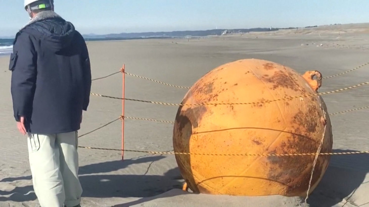 A mysterious metal ball spotted on a beach in Hamamatsu City this week prompted local police to scramble the bomb squad. A careful examination revealed it is not a threat -- but shed no light on what it actually is. pic.twitter.com/ytClWsP0bw
