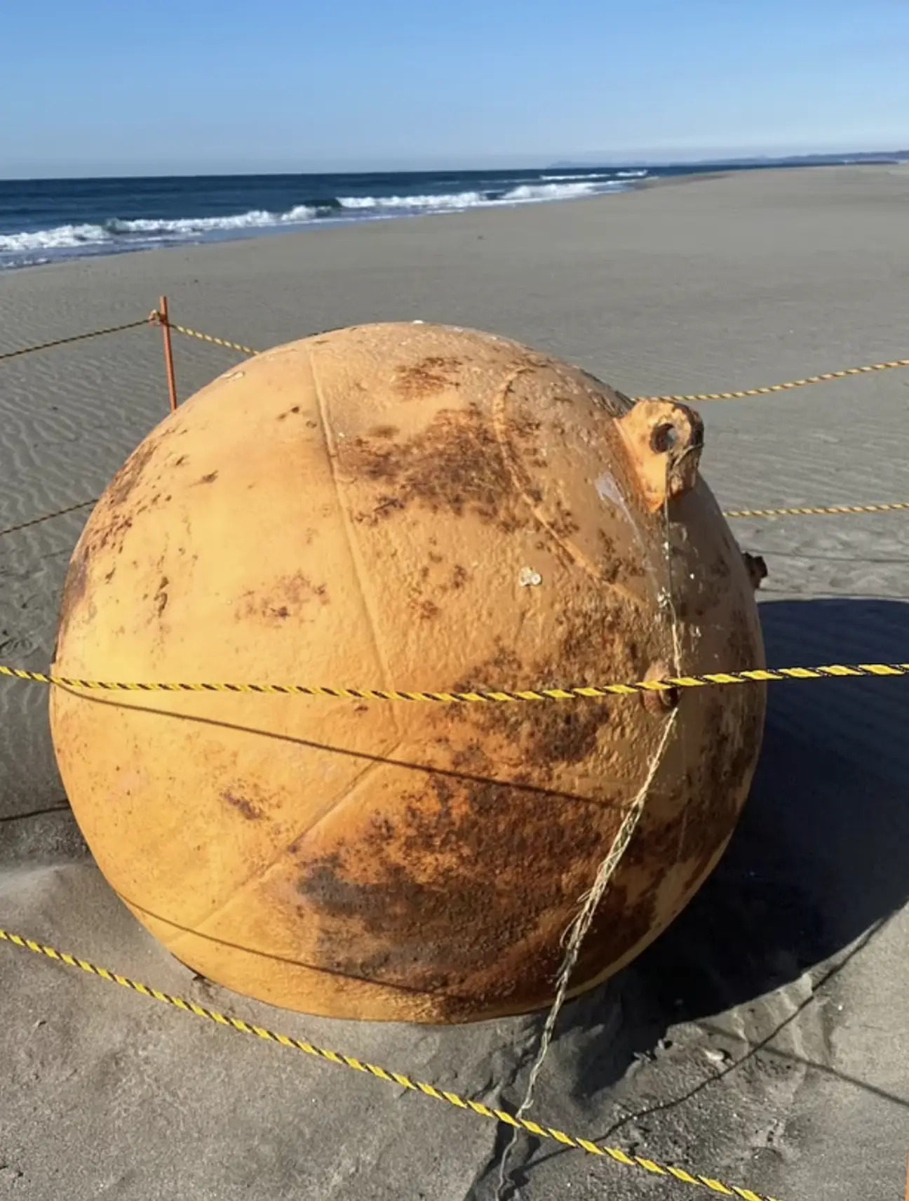 ▼日本東海大學海洋學教授山田吉彥看到照片後,認定這是為了固定近海捕魚礁石所使用的浮標,可能是受黑潮跟強風影響,才會漂流上岸。蘇格蘭海洋科學協會的海洋學家馬克也認為,這是能讓儀器漂浮在海上的浮標,能在海中漂浮數10年,很常被沖上蘇格蘭海岸,可能是在暴風雨中或被大型漁船拖動,才脫離原本的固定地。浮標一旦被沖上岸,就會失去標記作用,開始生鏽。