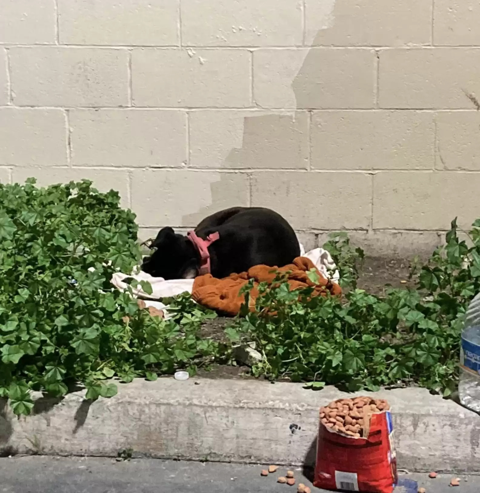 ▼Nirvana被發現時已經在洗車行旁蜷縮了2天。附近的好心人給牠準備了一些食物和水。Suzette趕到現場時,Nirvana疲憊虛弱,看起來非常可憐。