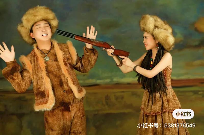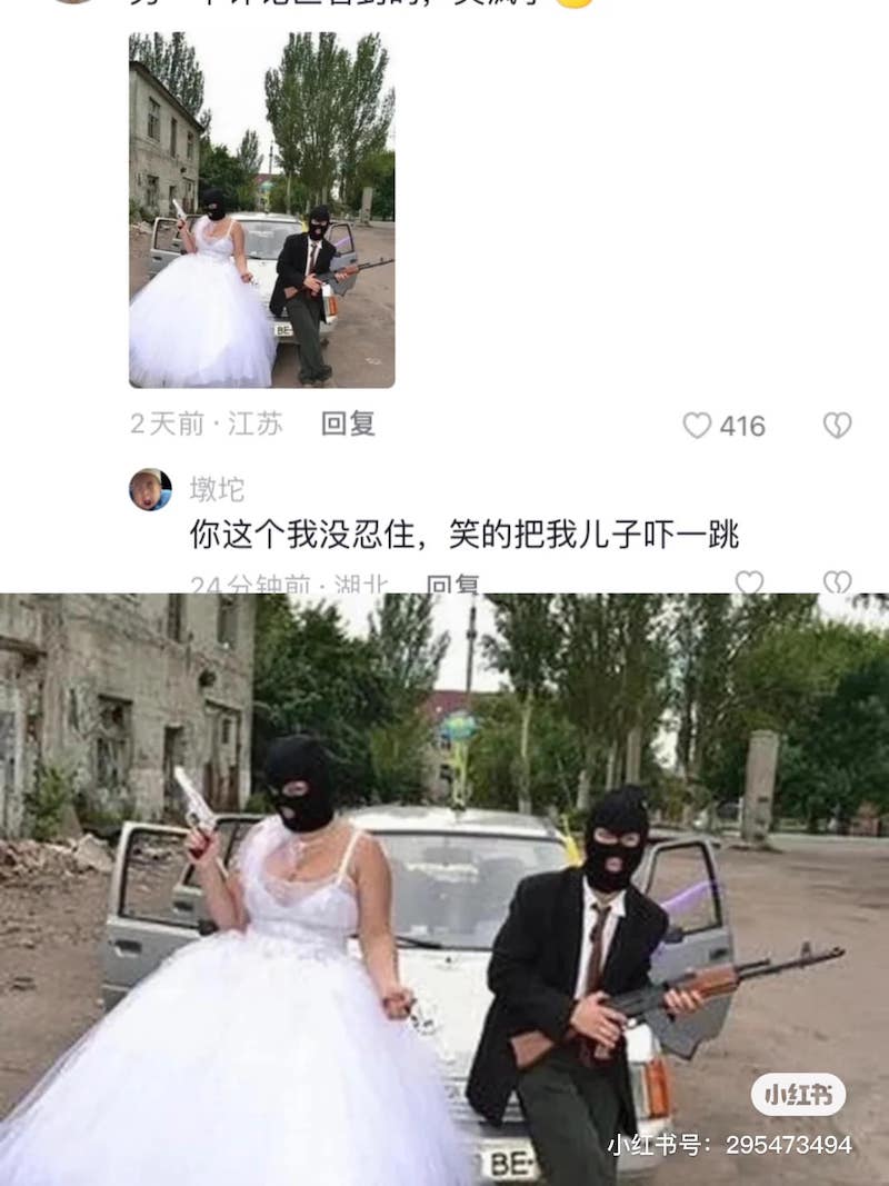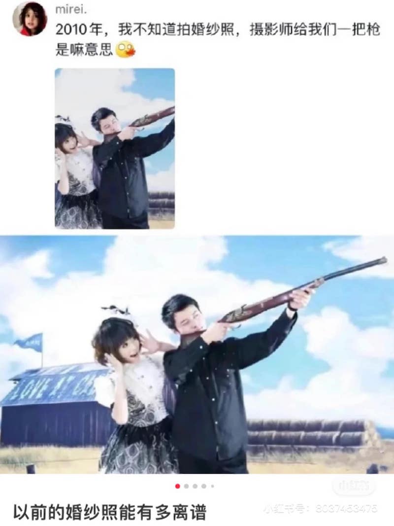 ▼10.「2010年,我不知道拍婚紗照,攝影師給我們一把槍是嘛意思。」