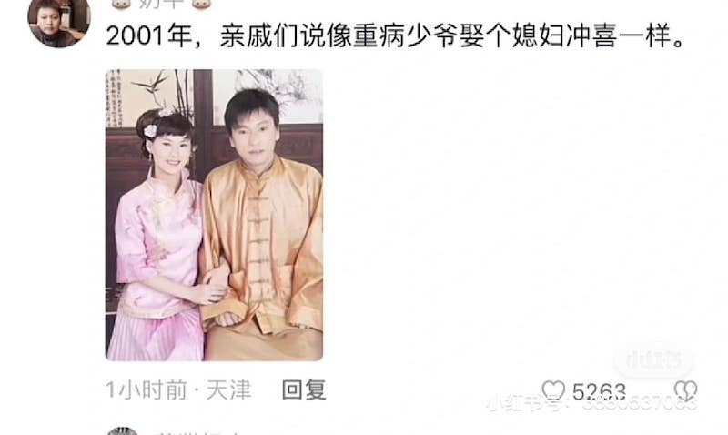 ▼17.「2001年,親戚們說像重病少爺娶個媳婦沖喜一樣。」