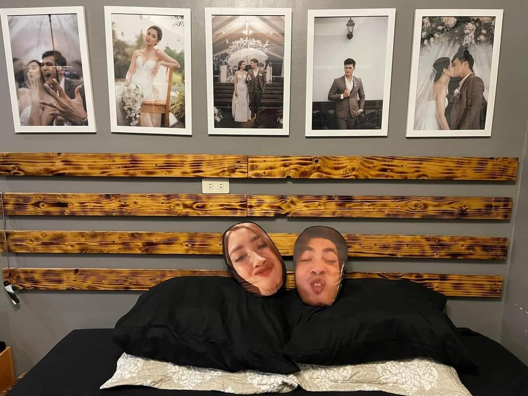 ▼更搞笑的是,他製作了另一個自己的同款抱枕,跟老婆的抱枕放在一起,幽默翻倍!