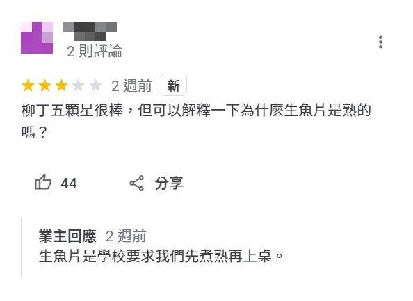 成功高中於2月15日至18日舉行為期4天3夜的畢旅,行程第2天到墾丁一間海鮮餐廳用餐。事後有學生到該餐廳的Google評論給出3星評價,並留言問「柳丁5顆星很棒,但可以解釋一下為什麼生魚片是熟的嗎?」業者回覆說「生魚片是學校要求我們先煮熟再上桌。」這一話題迅速在網路上引發討論。
