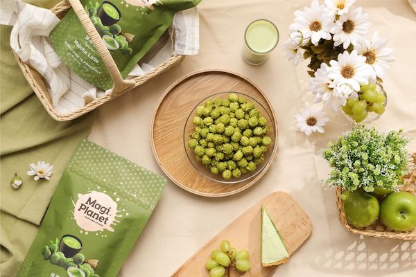 這款抹茶拿鐵爆米花嚴選京都宇治抹茶、靜岡抹茶調配黃金比例,濃郁香醇的抹茶粉混搭紐西蘭奶粉,口感甘甜不苦澀,吃一顆就能體驗到日式風情,彷彿置身日本當地品嚐抹茶拿鐵般,抹茶控絕對不能錯過!