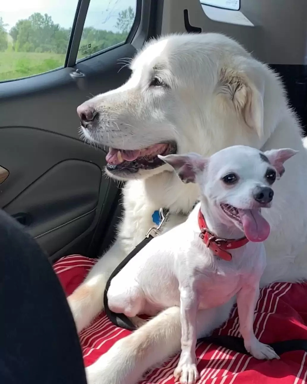▼Ben的體型是Tim的2倍大,但牠性格溫和,從來不會欺負小夥伴。在過去的6年裡,牠們整天一起玩耍,還會一起窩在沙發上休息。有時Ben躺在沙發上睡覺時,Tim還會爬到牠的身上去。
