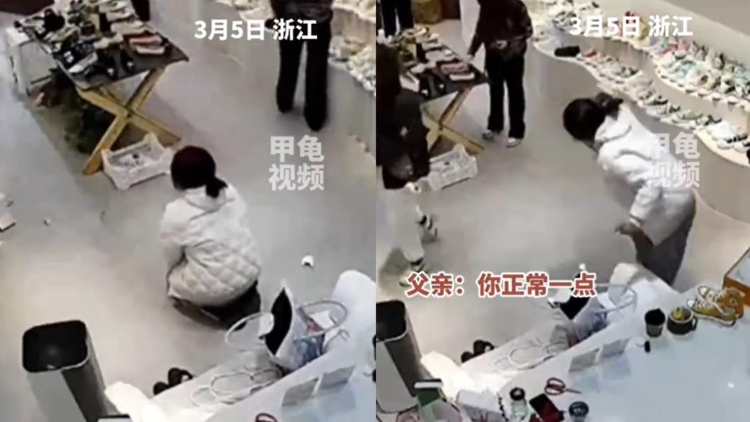 ▼眼看父母裝沒事準備離開現場,女子竟下跪對著雙親不斷磕頭。她跪下後邊哭邊說:「我就是想買1雙好一點的鞋子,為什麼要對我這麼殘忍?」店內的其他顧客和店員都大傻眼。面對崩潰的女兒,爸爸竟回應一句「你正常一點」。