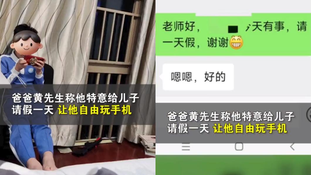 ▼據陸媒報導,廣東深圳一名男子,在凌晨1點發現兒子竟在偷玩手機。兒子整個人淪陷在遊戲裡,完全忘了隔天還要上課。爸爸決定給兒子一個教訓,他索性替兒子請假,讓孩子自由玩到爽。
