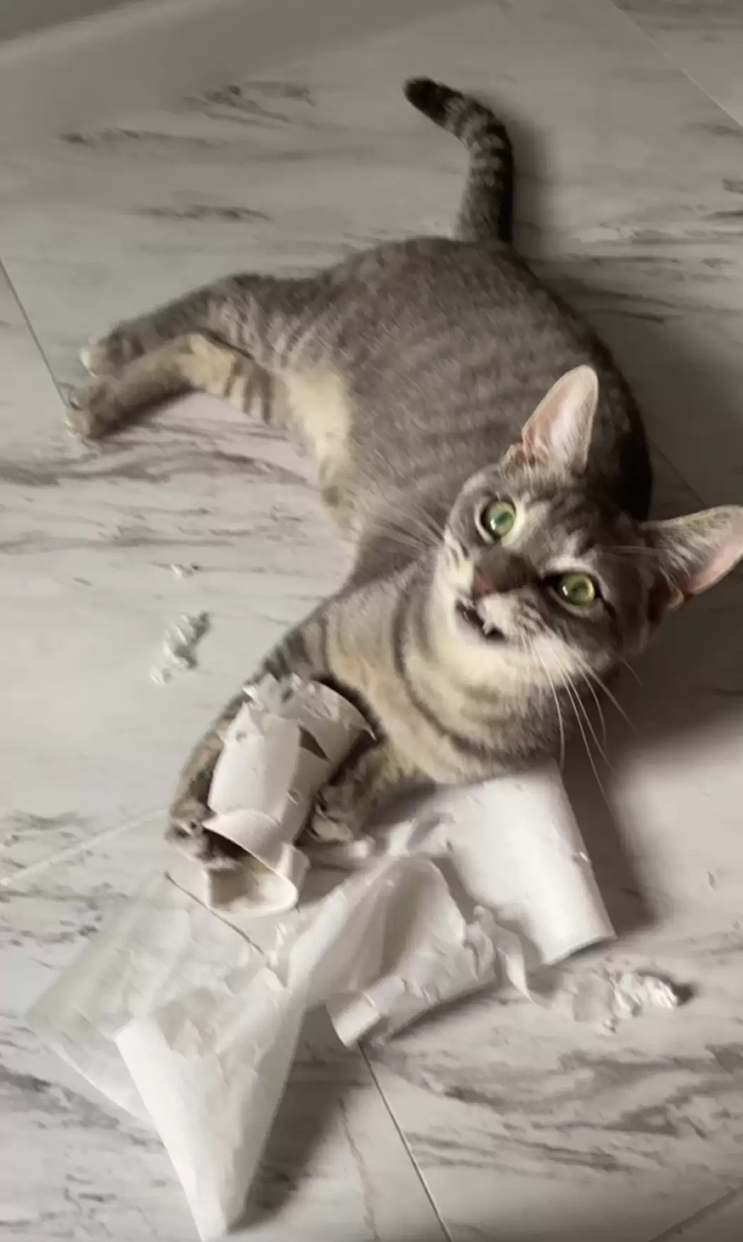 Emily和老公哭笑不得,他們沒想到Coco會這樣做,而且牠對自己搗蛋被抓包毫無悔意。Emily無奈說:「這就是Coco,牠絕對是世界上最調皮的貓咪之一,但牠真的很酷,我們超愛牠的!」