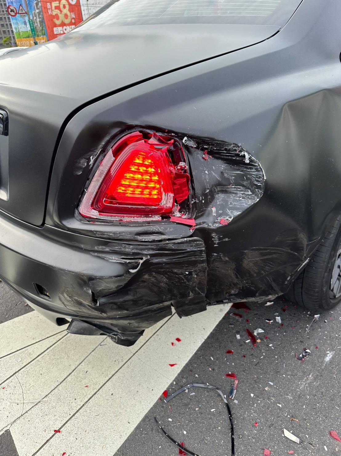 ▼據了解,25歲張姓女駕駛於17日下午3時許,駕駛休旅車從桃園出發,要去三芝找朋友,不料在淡水區淡金路一段與濱海路口,從後方撞上一輛正在停等紅燈的勞斯萊斯「鬼魅」。勞斯萊斯的右後方凹陷,保險桿毀損,燈殼破碎,休旅車也損傷不輕,幸好兩車駕駛都沒有受傷。
