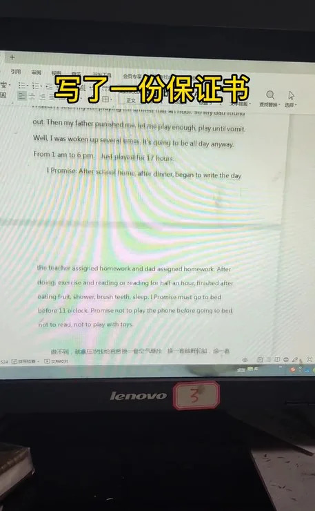 ▼兒子從凌晨1點半玩到下午6點半,終於熬不住了,主動向父親求饒,還用英文寫了一份保證書,保證以後不會再偷玩手遊。