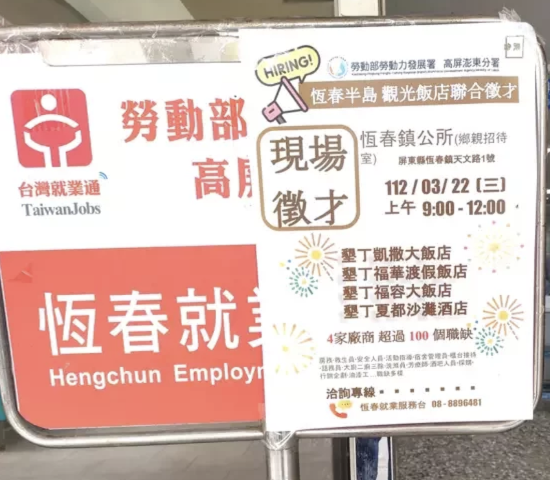 2023年03月25日疫情後飯店缺工問題嚴重!日前勞動部勞動力發展署高屏澎東分署舉行恆春半島觀光飯店聯合徵才,墾丁福華、夏都、凱撒和福容4家飯店,共釋出120多個職缺,但僅20多人到場應徵。在場的飯店人資主管大嘆「招人太難了!」