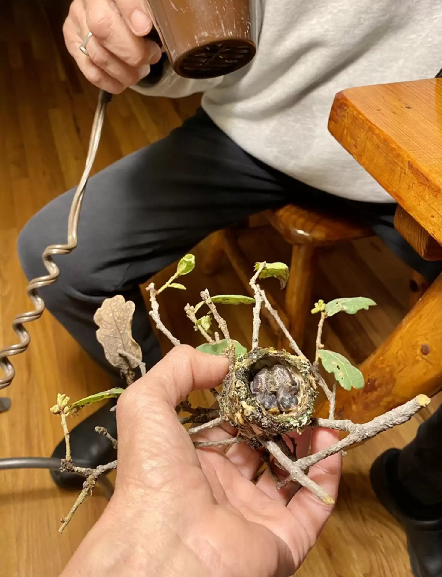 ▼Sabine說:「Terry告訴我們如何將鳥巢帶回家,給蜂鳥寶寶取暖、餵食,暫時照顧牠們。」