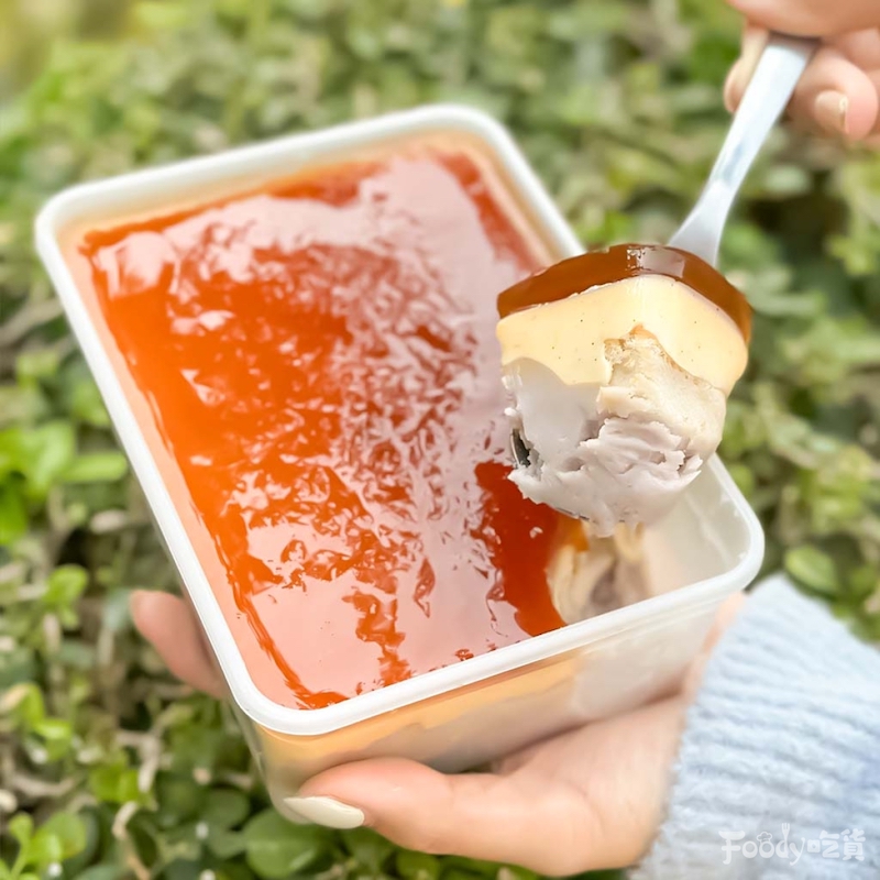 ▼芋泥控的福音!【栗卡朵】推出「焦糖布丁芋泥爽寶盒」,一打開就能聞到濃厚的芋頭香氣,從上到下依次為焦糖寒天凍、香草籽布蕾、鮮奶雪紡蛋糕、濃醇芋泥餡,芋泥餡濃厚紮實,甜而不膩,裡面還藏有芋頭塊顆粒,Q彈布丁配合香草籽,層次感十足!每盒高達一斤600克重,現在訂購只要280元!
