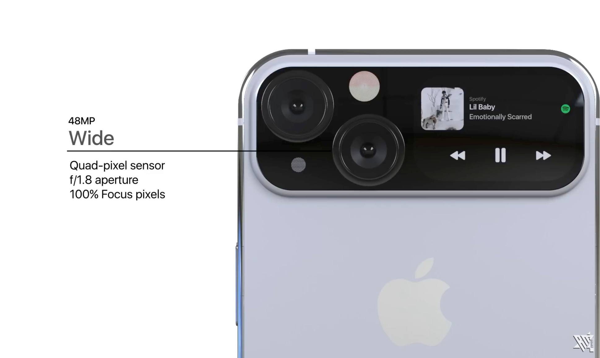 ▼從渲染圖可以看到,蘋果的iPhone折疊機在外型上有很大創新。不僅手機的機身可以對半折疊,外部還增加了副螢幕,能看到時間、通知訊息等等。同時這款手機也將延續iPhone 14 Pro系列獨有的動態島功能,不會有惱人的瀏海。