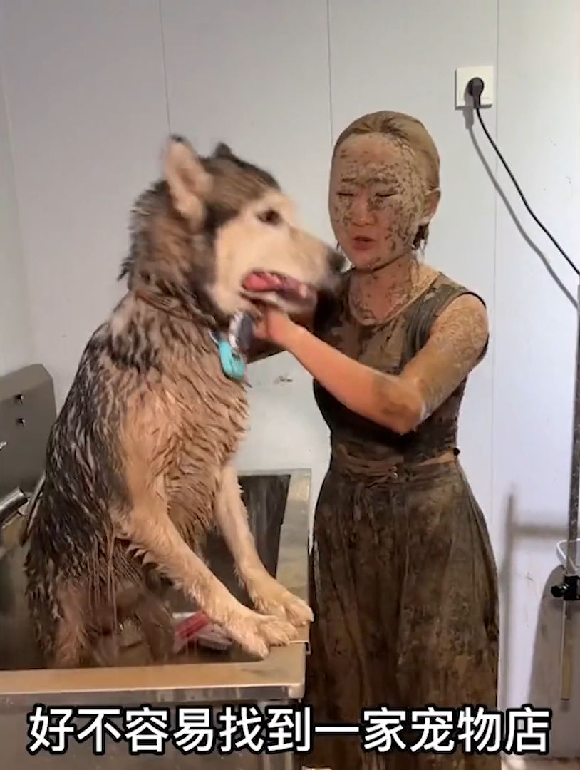 飼主只好親自上陣,幫愛犬沖澡。洗澡過程中,狗狗不停甩毛,還瘋狂哀嚎,讓主人再次全身濕透,洗掉的污泥更是堵塞了店家的下水道。飼主無奈說,哈士奇精力太充沛,每次出門都四處亂跑,還會滾泥巴坑,在家也總是亂咬家具,讓她十分頭疼。她沒養狗之前是一個「溫柔的小姊姊」,現在整天都超火大。