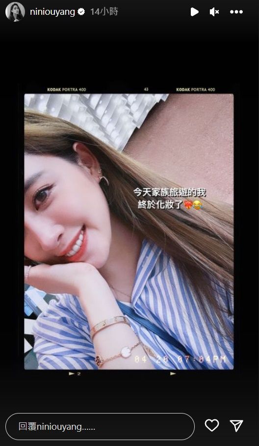 ▼近日歐陽家族一同出去旅遊,歐陽妮妮從4月30日開始陸續透過IG限時動態發文分享行程:「今天家族旅遊的我,終於化妝了。」她還開心曬出與娜娜、娣娣的合照,並說:「難得的一起出遊,難得的三姐妹合照!」