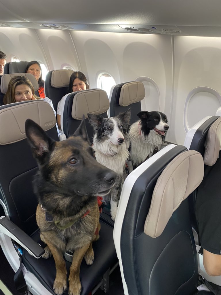 搭飛機巧遇「3隻搜救犬」坐整排超乖! 「發亮眼神+燦笑」融化全網:在備餐齁