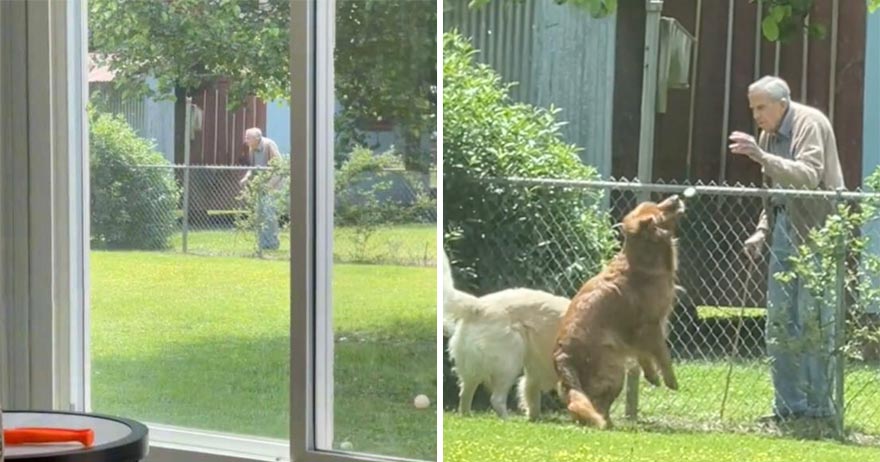 ▼Kimberly表示,住在隔離的鄰居Bill已經94歲了,他有一個可愛的習慣,那就是每天都會來到他們庭院圍欄的邊界線,跟Kimberly家的2隻狗狗互動,還會給牠們吃點心。