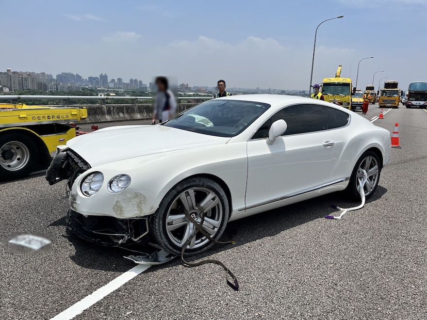 2023年05月19日日前一輛賓利歐陸GT(Bentley Continental GT)行經國道1號北上50.2公里處桃園路段時,與一輛轎車發生碰撞,導致賓利車頭幾乎全毀。這輛賓利歐陸GT全新車價1180萬起跳,如果車體毀損部分全使用原廠零件維修,恐怕要花300萬。