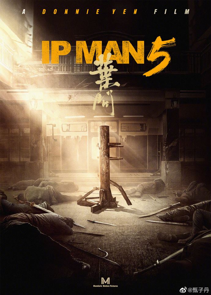 ▼2019年時,甄子丹曾表示過《葉問4》是該系列的最後一集,同時也是他的最後一部功夫片。現在《葉問5》即將製作,令外界都相當好奇,編劇會怎樣讓79歲的葉問死而復生?從《葉問5》的前導海報上可以看到,一個木人樁矗立中央,許多人倒臥在旁,看來這部電影同樣會有很多精彩的動作場景。