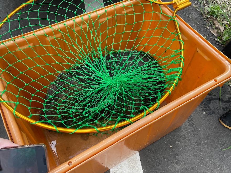 ▼新豐鄉瑞興村村長李兆恩表示,他21日上午10點多接獲鄉親通報,稱鄉內一處溪水附近有動物受困。他趕到現場後才發現是1隻水豚,於是通報縣政府及相關單位處理,水豚的飼主後來也到場。眾人拿著大網子在溪水捕撈,水豚先是潛水閃過緝捕,後來又在水中拚命掙扎,最後終於被抓進籠子。
