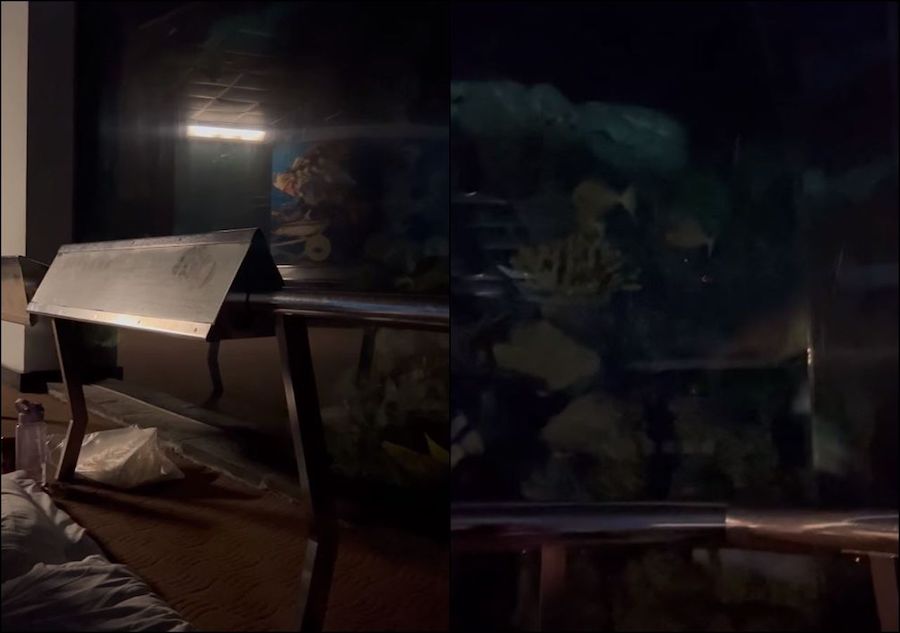 ▼原po詢問工作人員原因,對方回覆「不好意思,魚也要休息喔」。原po十分不滿但沒有抗議,決定隔天清晨6點提早起床看魚,但隔天上午7點都morning call了,水族箱的燈依然沒有打開。他再度詢問工作人員,才得知水族箱的燈要到8點50分開館時才會打開。