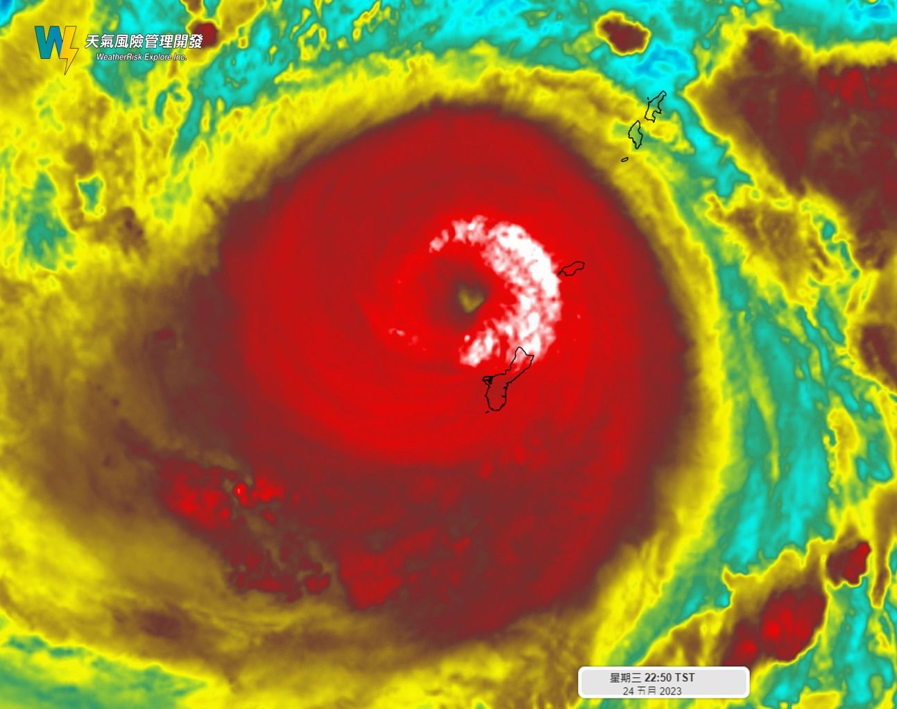 2023年05月25日颱風瑪娃24日因雙眼牆置換,一度從強颱減弱為中颱,現在重新開眼並出現「愛心眼」,預計接下來有機會增強回強烈颱風,並往西北西移動,在下週日或下週一達到最大強度,直到靠近台灣才會逐漸減緩並北轉,對台灣影響還待觀察。
