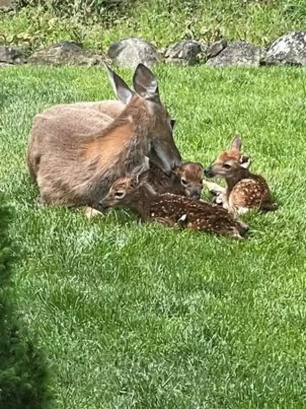 一隻母鹿悠閒走入後院! 隔天「有4隻離開」她驚:當產房了