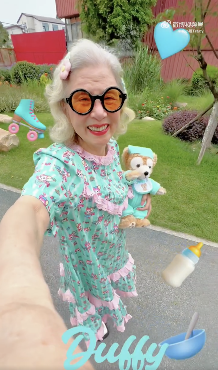 ▼「吹小姐Tracy」的阿嬤已經89歲,她一頭白髮,但精神很好,臉上一直掛著燦爛的笑容。「吹小姐Tracy」和阿嬤一起拍攝了很多時尚照片,阿嬤能駕馭多種時尚風格,沒想到連「多巴胺穿搭」也能穿出自己的感覺,看起來少女心滿滿。