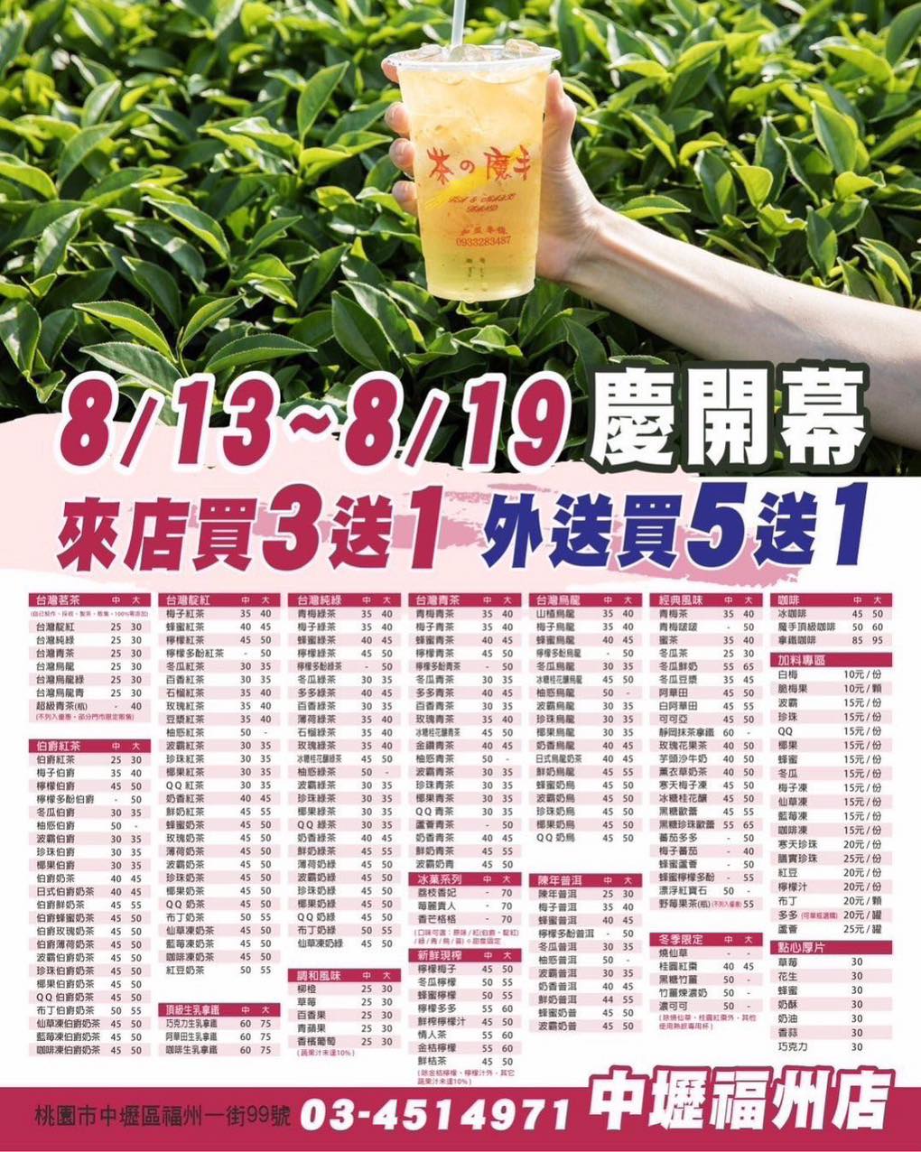 2023年08月16日手搖南霸天「茶の魔手」本月13日插旗中壢,並在19日前一連7天祭出開幕優惠,來店消費買三送一、外送買五送一,消息公開後引起排隊人潮。有網友透露,等了5個小時才買到。更有女店員透露,一天做了超過1700杯飲料,「手都沒停過」,泡到手都快軟掉了。