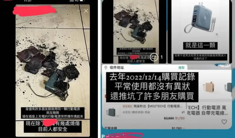 一名網友在Dcard上分享一則消息,一名使用者在2022年12月14日購入這款行動電源,平時使用都沒有異狀,甚至還推薦給不少朋友購買,沒想到日前插在插座上充電的行動電源突然爆炸,一整顆燒得焦黑,「如果不是男友和男友爸爸即時衝進房間滅火,我真的沒了」。原po忍不住問:「在他們社群看到有人發,有一台行動電源爆炸,但還沒看到他們官方有什麼聲明,有點擔心,因為自己也有一台,大家會繼續用嗎?好可怕。」