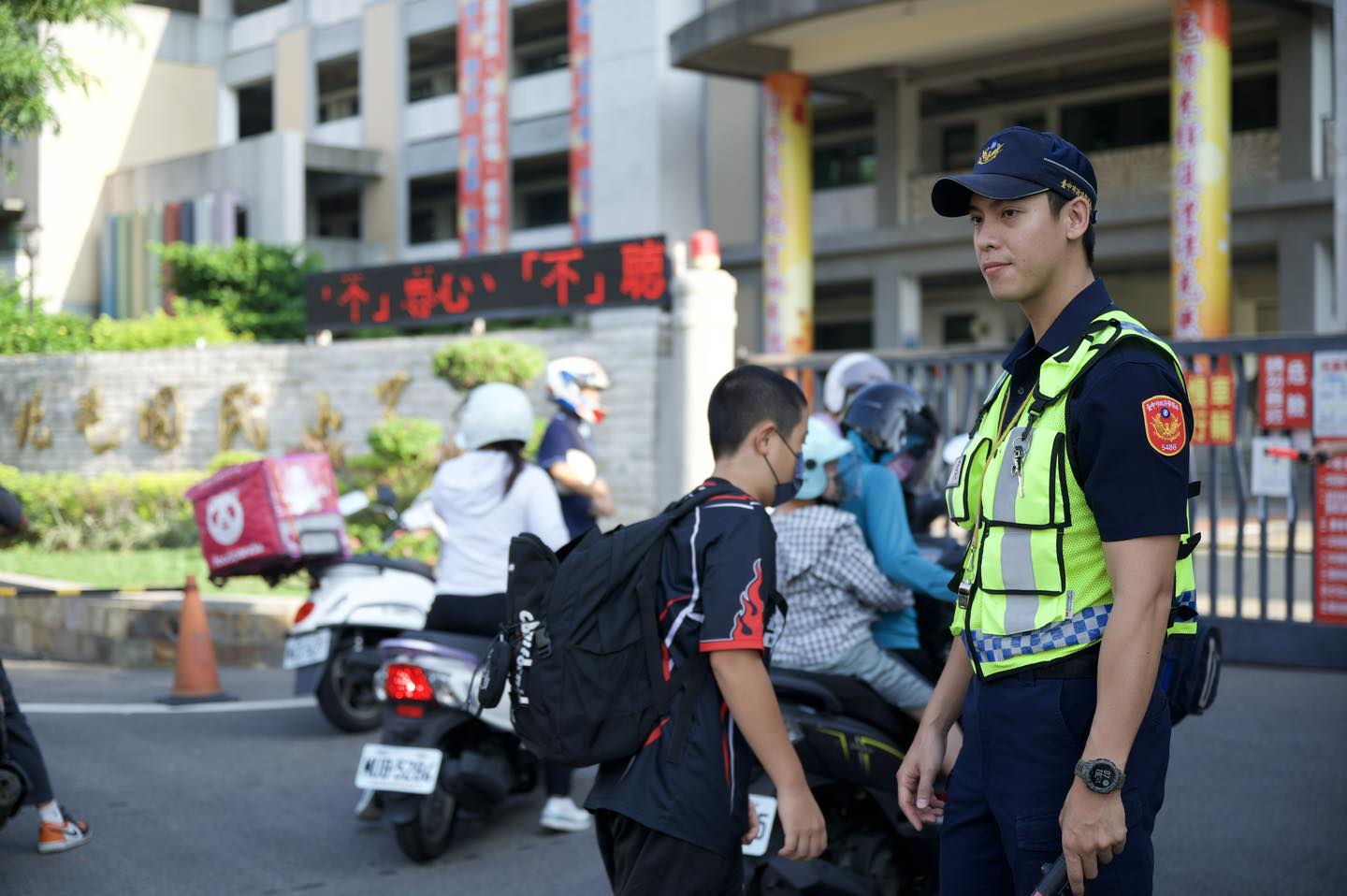 媽媽們快衝!國中小開學首日 「天菜帥警」現身校門前疏導交通